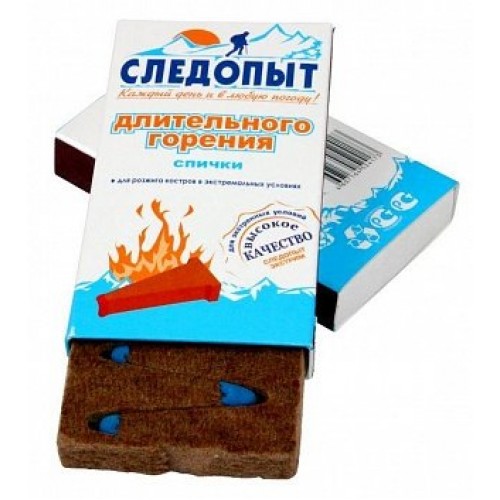 - Спички охотничьи «СЛЕДОПЫТ-ЭКСТРИМ», длительного горения предназначены для розжига костров в экстремальных походных условиях или в условиях экспедиций.