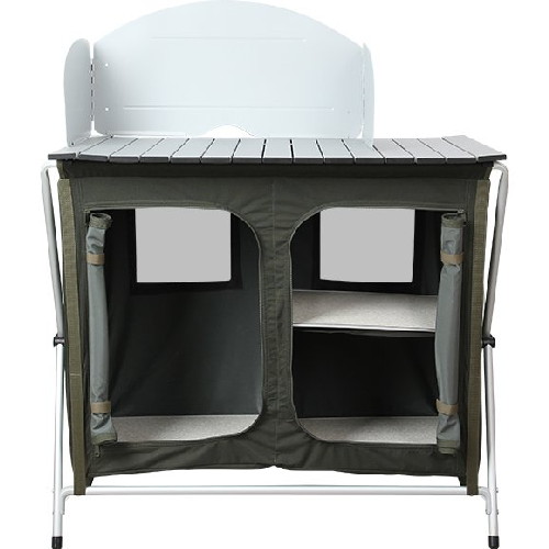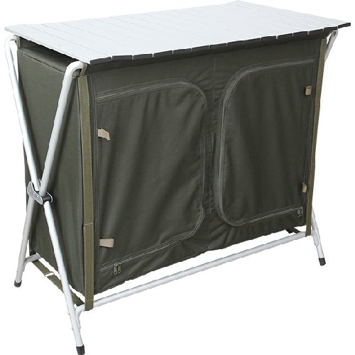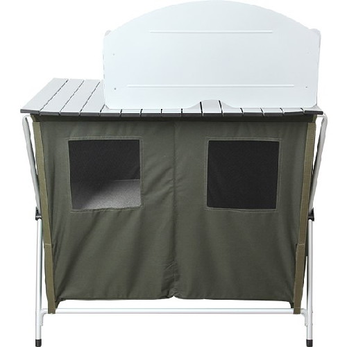 Прочный, устойчивый кухонный стол весит всего 7.4 кг, что достигается путем использования для его изготовления алюминиевого сплава, панелей МДФ и легкой высокопрочной ткани.