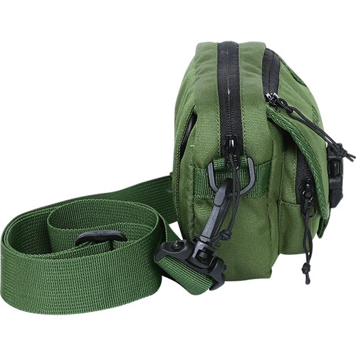 Два способа крепления плечевой лямки (по бокам или сзади сумки). Возможность крепления на пояс.
