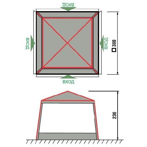 • Две стойки для установки козырька над любым из входов.