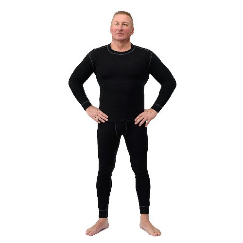 Фуфайка и кальсоны. Термобельё состоит из нескольких слоев: внутренний (100 % хлопок), средний (100 % полипропилен), внешний (100% шерсть мериноса).