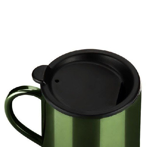 Кружки изготовлены из нержавеющей стали и снаружи покрыты цветным блестящим лаком, придающим им приятный вид, обладают двойными стенками для лучшей термоизоляции.