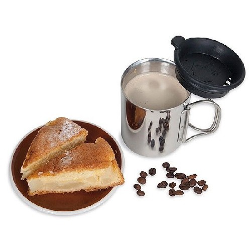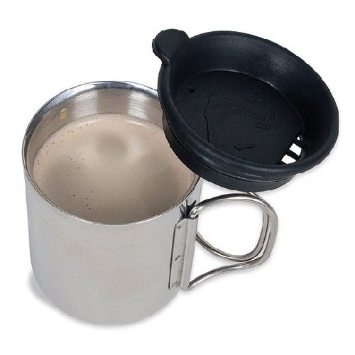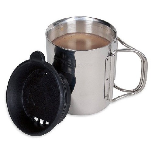 Термокружка из нержавеющей стали со складными ручками и крышкой. Удобна в транспортировке. Очень долго сохраняет горячее горячим, а холодное холодным.