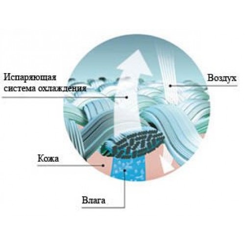 - Coolmax, влагоотводящее 4-канальное волокно с увеличенной площадью поверхности на 20%