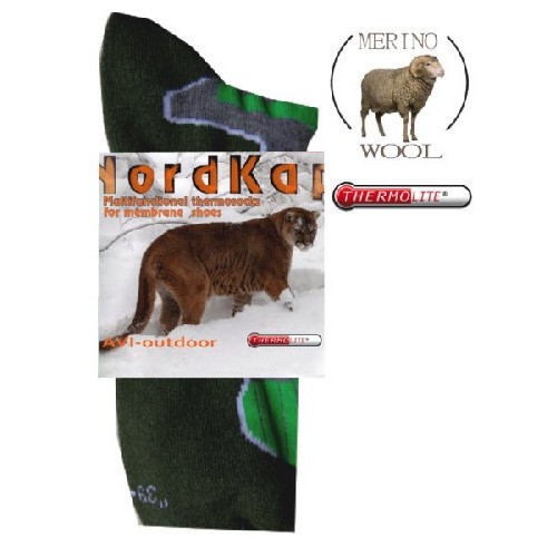 Носки имеют 4-х сторонее(всесторонее) растяжимость при этом не теряя своих качест и свойств. В термоносках NordKapp 973 используется уникальная технология сохранения тепла Thermolite.