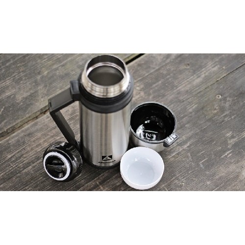 Термос Арктика 201 серии пригодится для хранения в нем не только напитков, но и еды. С этой же целью пробка термоса состоит из двух составных частей – узкая внутренняя пробка пригодится, когда термос наполнен напитком (она также снабжена каналами для налива в полуоткрытом положении), а более широкую внешнюю часть можно снять, чтобы было удобнее доставать из термоса еду.