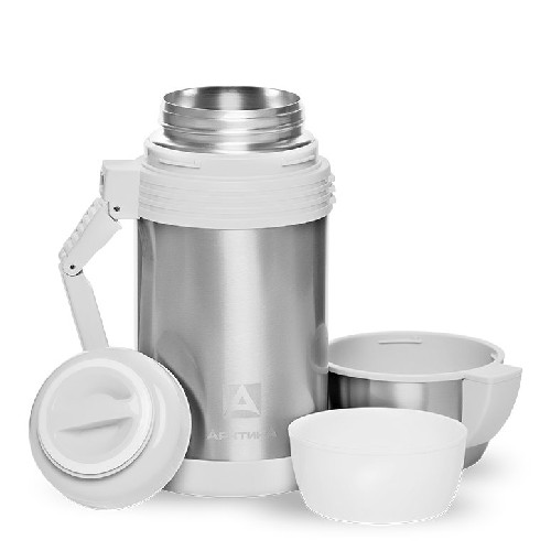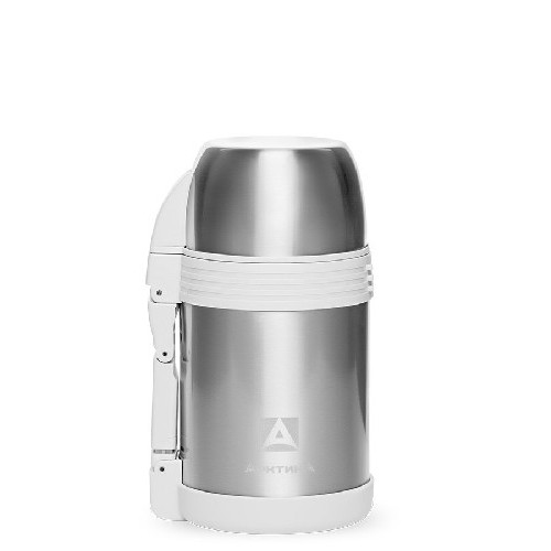 На боку корпуса расположена ручка, которая раскладывается и убирается одним движением. Корпус термоса и внутренняя колба изготовлены из высококачественной пищевой нержавеющей стали.