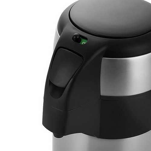 Забудьте о сложном открывании тугих крышек! Чтобы налить чай или кофе, достаточно нажать кнопку, с чем справится даже ребенок. Пневмонасос обеспечивает подачу жидкости в краник для наливания.