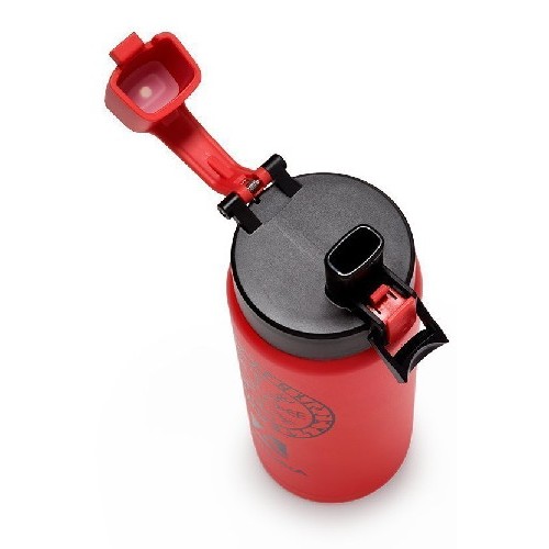 Поилку защищает специальная крышка, которая в свою очередь также служит удобной ручкой для переноса термоса в руке. Механизм крышки-поилки на термосе позволяет быстро открывать его одной рукой и пить из поилки, а не из чашки.