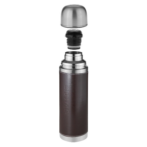 Термос предназначен для хранения горячих и холодных напитков (чая, кофе) и имеет удобную вставку из искусственной кожи.