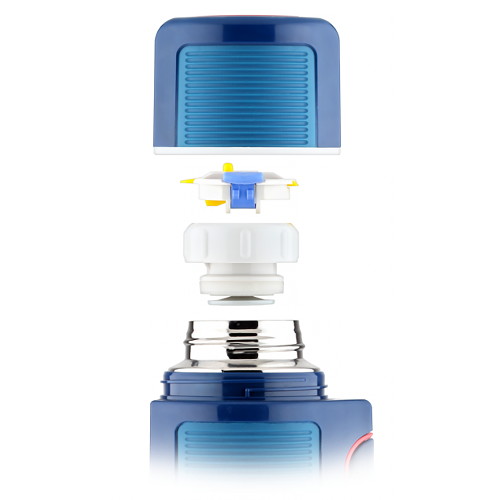 Двустенная чашка-крышка не обжигает руки и вмещает полные 200 мл жидкости. Термос оснащен надёжной пробкой-стопором, конструкция которой позволяет разобрать её одним нажатием и тщательно промыть.