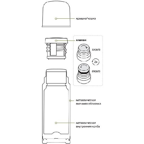 - Резьбовая крышка со специальным желобом, позволяющая выливать содержимое, не отвинчивая крышку полностью