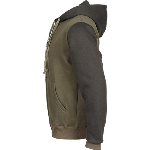Толстовка изготовлена из смесовой ткани футер (смесь хлопка с полиэстером), которая хорошо сохраняет тепло и не препятствует циркуляции воздуха.