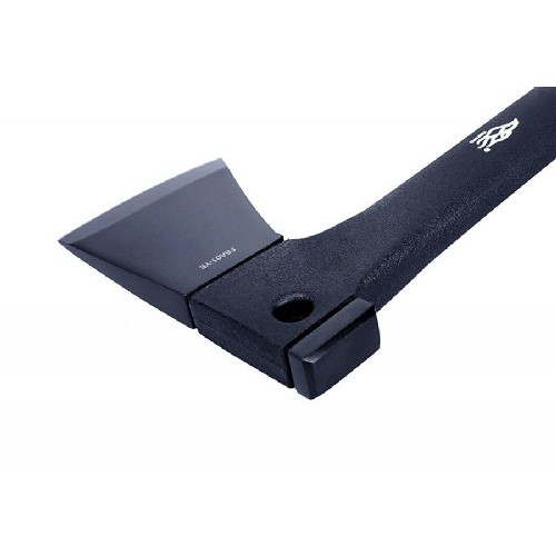 Главный инструмент набора — именно топор. Он самый крупный по размерам — 34,7 см по длине, с шириной режущей кромки 8 см. Для его изготовления использована сталь 3CR13. А дополнительной защитой от коррозии стало темное покрытие на поверхности металла, которое не стирается в процессе эксплуатации топора. Рукоятка этого инструмента сделана из нейлона, укрепленного за счет стекловолокна. При том, что он имеет высокую прочность, ручка остается очень легкой. К тому же, она изнутри пустая, что позволяет хранить в топоре следующий элемент комплекта — ручную пилу.