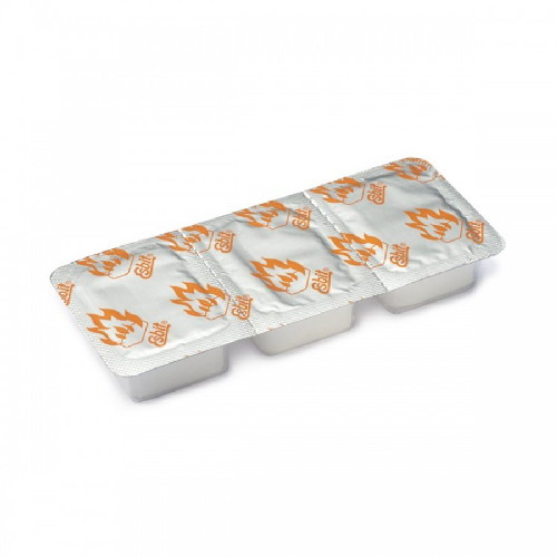 Вес таблеток — 14 грамм и они сгорают за 12 минут. То есть, упаковки топлива хватит, чтобы поддерживать горение в течение 144 минут. Сгорает сухое топливо без остатка. С его помощью можно закипятить чай, приготовить или просто разогреть пищу. Важно отметить, что во время горения не выделяется никаких токсичных веществ.