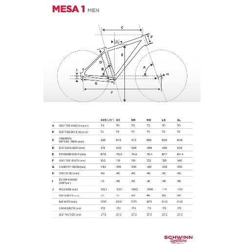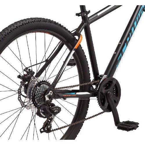 Mesa 1 – лучший горный велосипед от Schwinn для прогулочного и фитнесс катания. Лёгкая и жёсткая алюминиевая рама обеспечивает низкий вес и долговечность велосипеда. Амортизационная вилка SR Suntour имеет 75 мм мягкого хода с регулируемой жёсткостью. Подпружиненные пыльники предотвращают попадание грязи внутрь вилки, что гарантирует её долговечность и плавность работы. Семи скоростная трансмиссия Shimano быстро и чётко меняет передачи с помощью триггерных шифтеров на руле. Колёса диаметром 27,5” – это самый современный стандарт, обеспечивающий хороший накат и управляемость велосипеда при движении. Дисковые механические тормоза отлично работают в любую погоду и не нуждаются в частой регулировке.