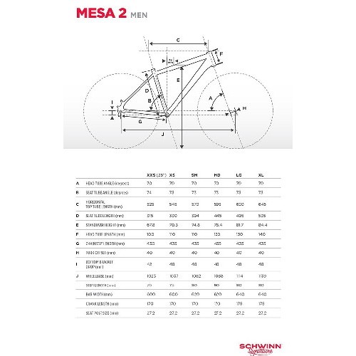 Mesa 2 – это легкий и надёжный велосипед для катания по парковым тропинкам и городским улицам. Schwinn Mesa 2 собран на лёгкой алюминиевой раме, которая обеспечивает низкий вес всего велосипеда. Комфорт и управляемость при езде по пересечённой местности Вам дарит амортизационная вилка Zoom HL565 c ходом 80мм и регулировкой жёсткости. Она отлично гасит вибрации он мелких неровностей парковых дорожек и улучшает сцепление переднего колеса с дорогой. Надёжные и не требующие частых настроек переключатели передач Shimano Tourney прослужат не один год и будут радовать чёткой сменой скоростей. Колёса диаметром 27,5” – это самый современный стандарт, обеспечивающий хороший накат и управляемость велосипеда при движении.