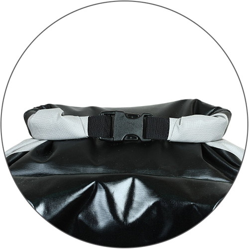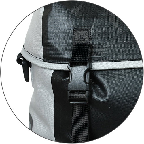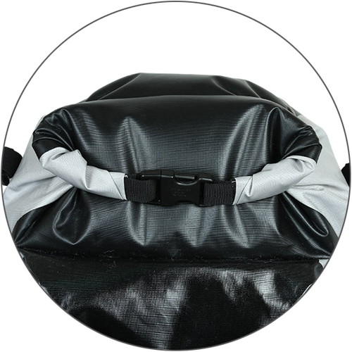 Вход в сумку закрывается классической скруткой, применяемой в гермомешках и баулах, что позволяет добиться абсолютной герметичности.