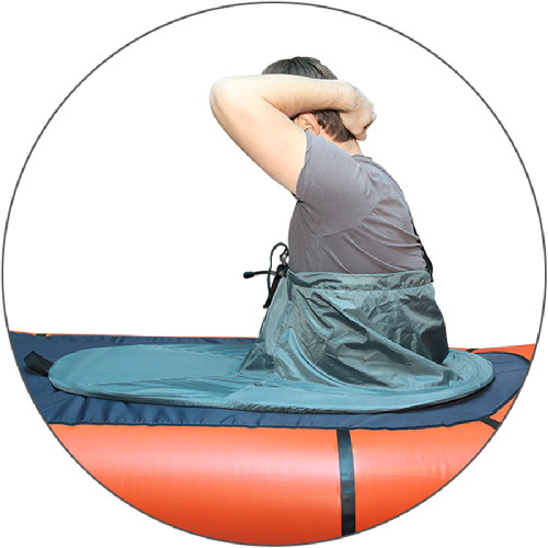 Юбка защищает от попадания брызг и воды внутрь пакрафта. Быстро устанавливается, даже если Вы в пакрафте на воде. Оснащена подтяжками, которые удерживают её на гребце даже во время переворота, не стесняя движений. Регулируется под любой размер талии с помощью фиксатора.