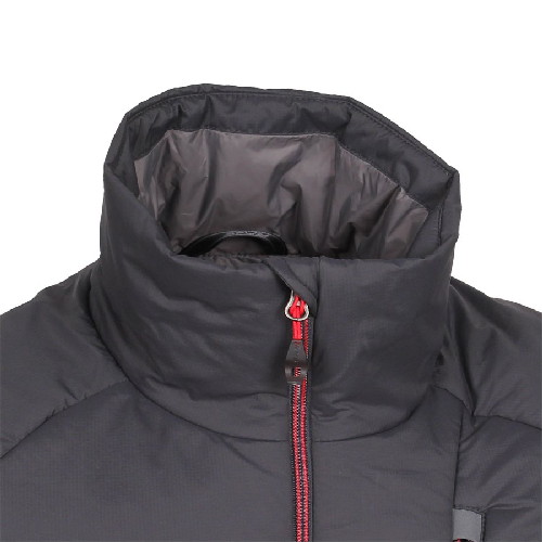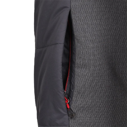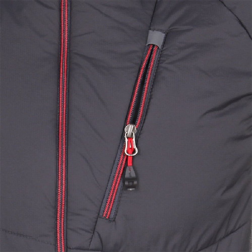 Полочка и спинка выполнены в виде сэндвича из верхней стрейч ткани, с защитой от дождя и ветра, 1 слоя Primaloft® Silver 100 и подкладочной ткани